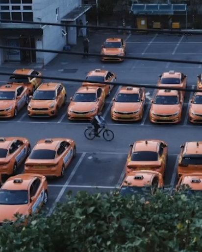 다음은 택시들이 주차된 풍경입니다. 우리가 차를 차거나 기차를 타고가다 흔하게 볼 수 있는 택시 주차장에서도 패턴을 발견했습니다.
