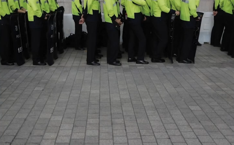 경찰들이 줄을 서 있는 곳에서도 패턴을 발견할 수 있습니다.