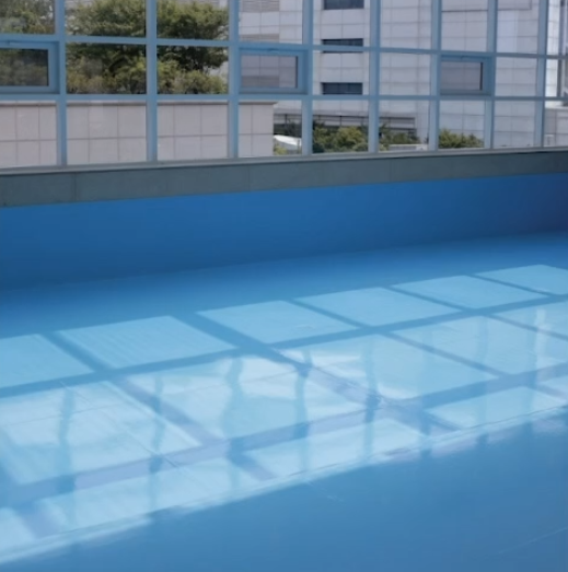 이 사진은 건물의 위쪽에서 아래를 바라보며 찍은 사진인데, 운동장과 도로가 도형의 모습을 띄고 있습니다.