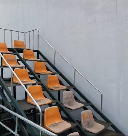 체육관에 있는 주황색 의자들도 반복되는 패턴으로 놓여있습니다.