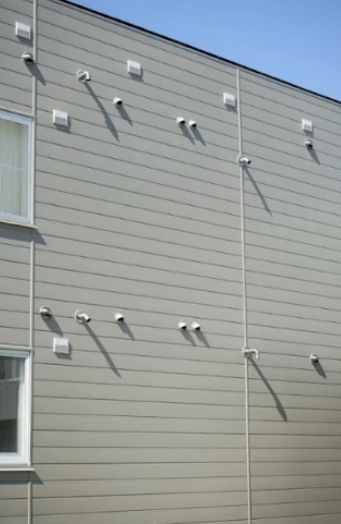 건물의 벽면에 있는 구조물들이 재미있는 반복을 만들어냈습니다.