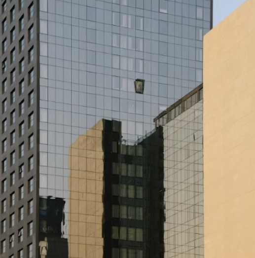 반영을 이용하면 건물에 비친 반대편 건물도 촬영할 수 있습니다.