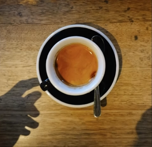 그림자로 커피를 잡는 시늉을 하는 사진을 촬영했습니다.