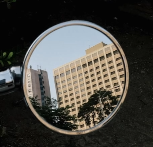 오토바이 미러를 이용해서 건물을 촬영할 수도 있습니다.