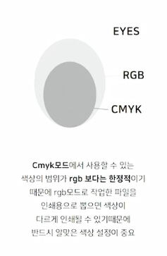추가로 더 설명드릴 것은 CMYK모드에서 사용할 수 있는 색상의 범위가 RGB보다는 한정적이기 때문에 RGB모드로 작업한 파일을 인쇄용으로 뽑으면 색상이 다르게 인쇄될 수 있기 때문에 반드시 용도에 알맞은 컬러모드를 설정하는 것이 중요합니다. 그래서 디자인이 사용되는 매체에 따라서 이에 맞게 설정해서 사용하면 됩니다.