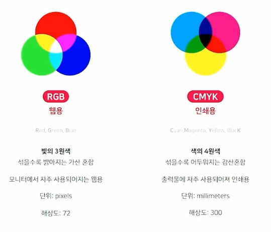 이번 시간에는 이렇게 RGB컬러와 CMYK컬러의 차이점과 역할에 대해 간단하게 알아보았습니다.