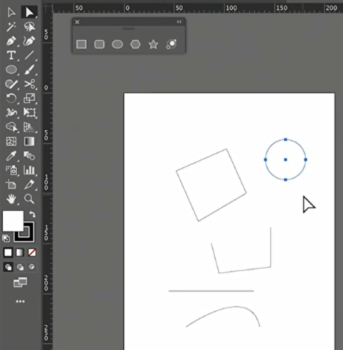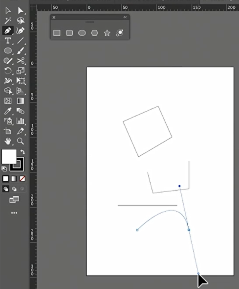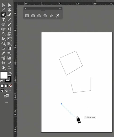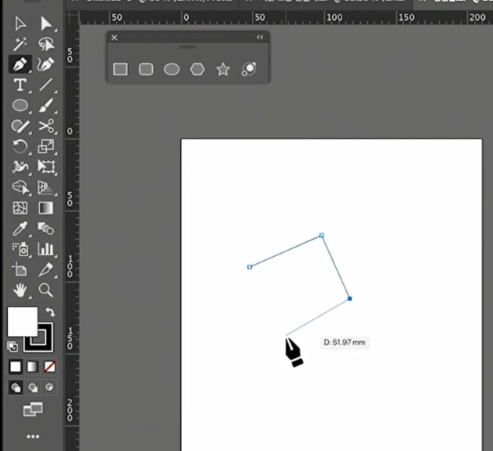 이제 수직과 수평을 한 번 그려보겠습니다. 펜툴을 선택하고 아트보드에 첫 포인트를 찍습니다. 그리고 shift를 누른 상태에서 드래기를 해보면 수직, 45도, 수평의 선을 그을 수 있습니다.