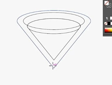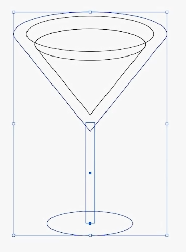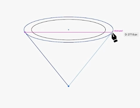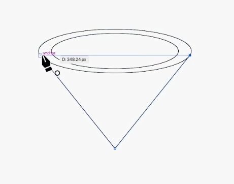 펜툴 선택해주시고 잔입구의 끝부분에 포인트를 잡고 그려줍니다. 이때 스마트가이드가 켜져있으면 자동으로 중심을 잡아줍니다. 반대쪽까지 갔다가 다시 처음위치로 돌아와 펜을 찍어 펜툴을 마무리해줍니다. 그러면 역삼각형 모양이 완성됩니다.